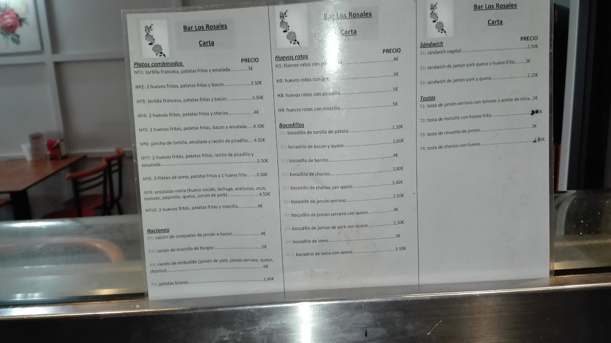 Welcome to Bar Los Rosales Desayunos Tapas, nestled in the vibrant heart of Burgos at Pl. Luis Martin Santos. This charming café offers a delightful array of dishes perfect for both early risers and tapas enthusiasts. Start your day with their renowned tortillas, praised by loyal patrons for their diverse and flavorful offerings. Pair that with a refreshing drink, such as a chilled CocaCola or Kas Limón, each priced at just €2.00.